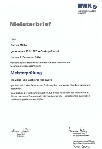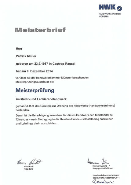 der ich erfolgreich meinen KFZ-Lackiermeister absolviert habe. Im Anschluss an die